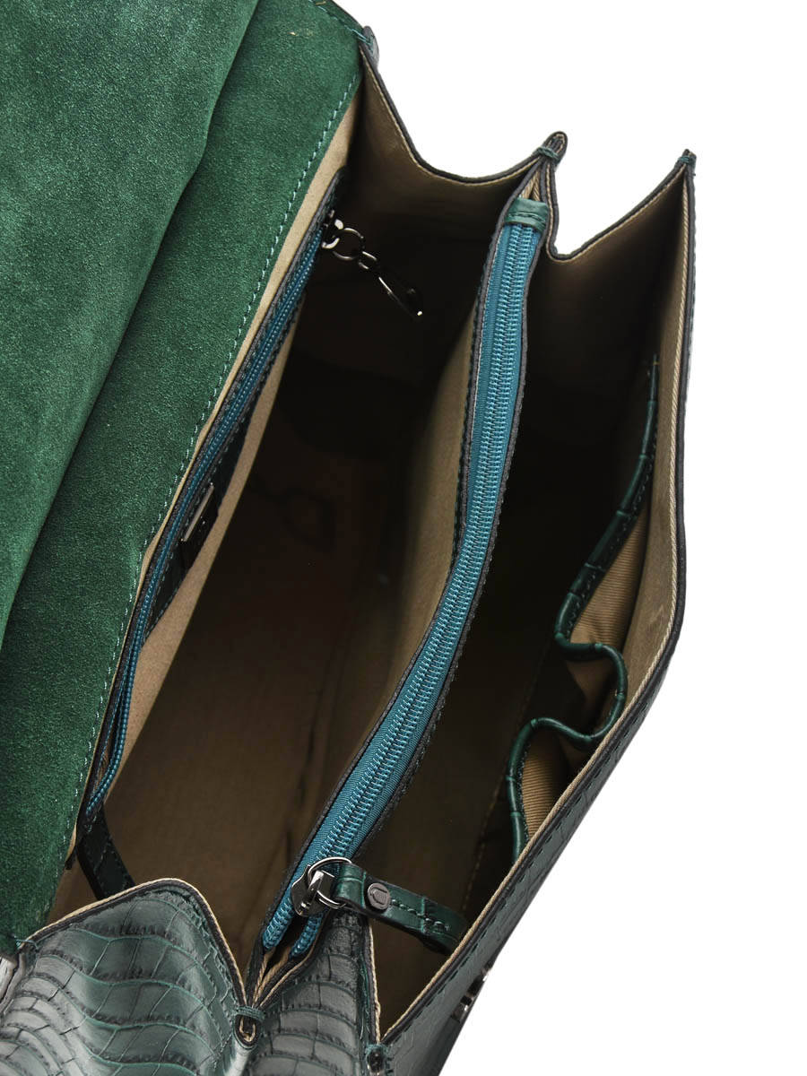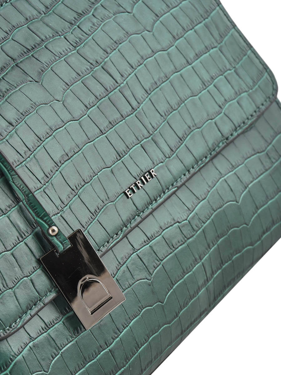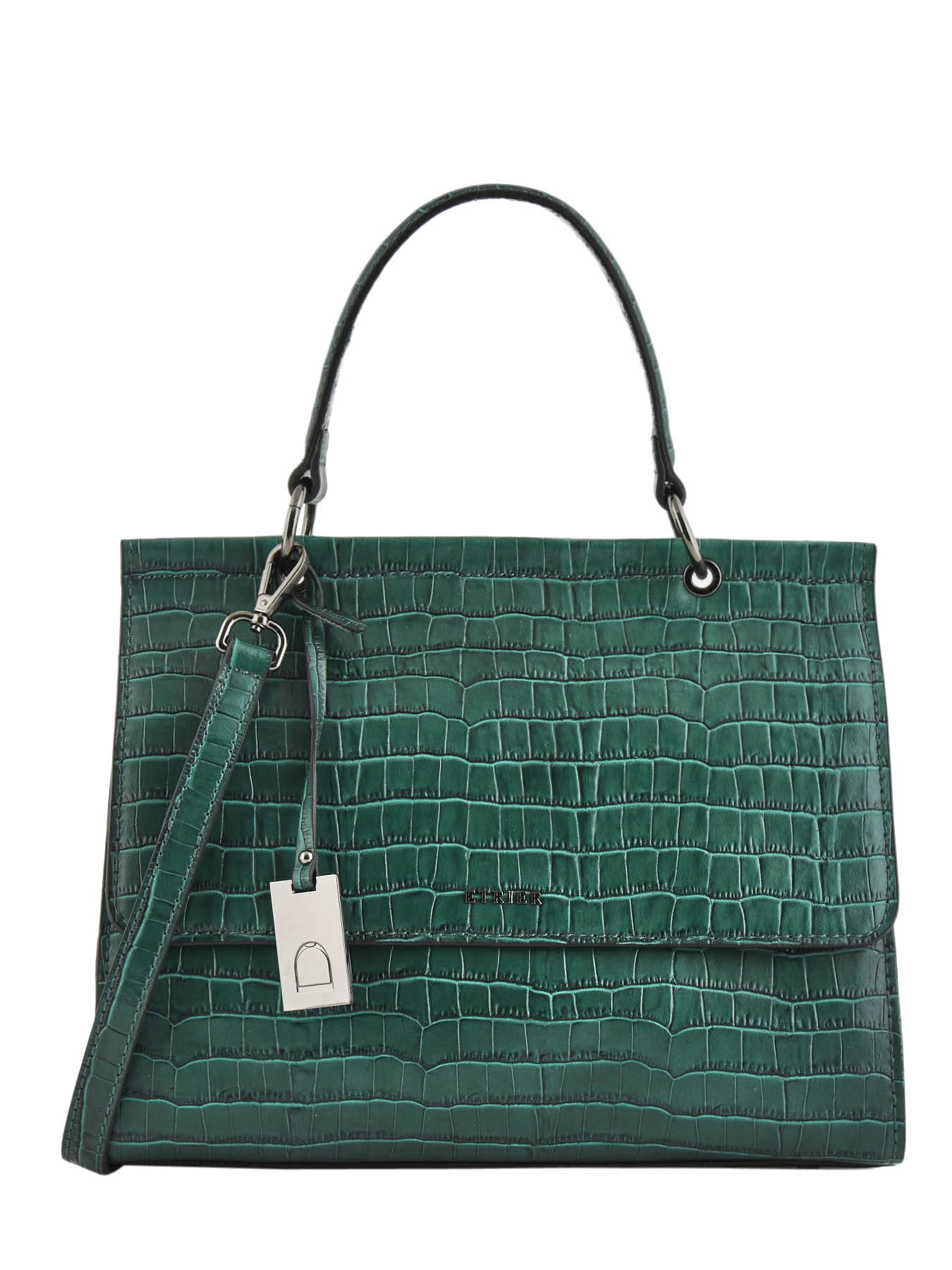 Deze handtas uit de Darwin collectie van Etrier heeft een klassiek silhouet, afgewerkt met een exotische toets. Het leder van deze handtas kreeg een stijlvolle croco-textuur, wat bijdraagt aan de gesofisticeerde look van dit accessoire. Het zilverkleurige tasjuweeltje bezorgt de tas een moderne toets! Dit model met overslagflap sluit met behulp van twee drukknopjes. Binnenin zijn er twee mediumgrote steekvakken voorzien, met een handig ritsvak in het midden. Perfect om jouw spulletjes overzichtelijk op te bergen! Etrier voorziet ook een afneembare schouderriem, om deze Darwin tas gekruist of lang over de schouders te dragen.