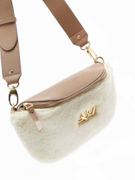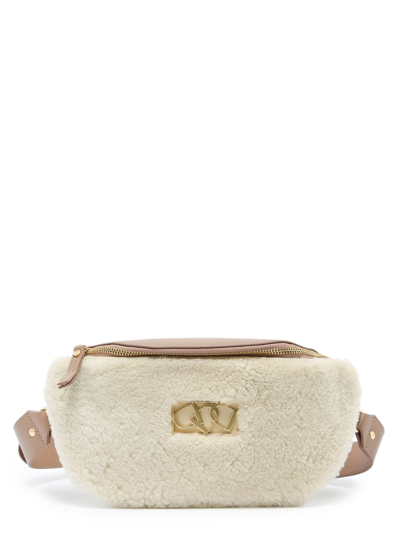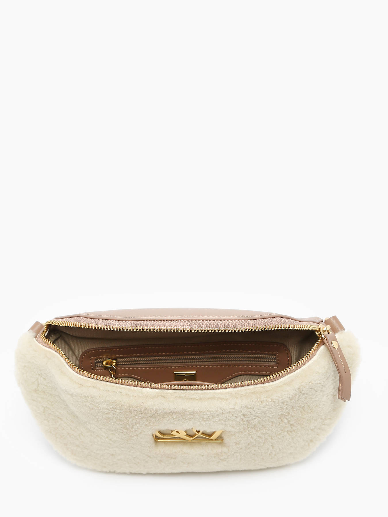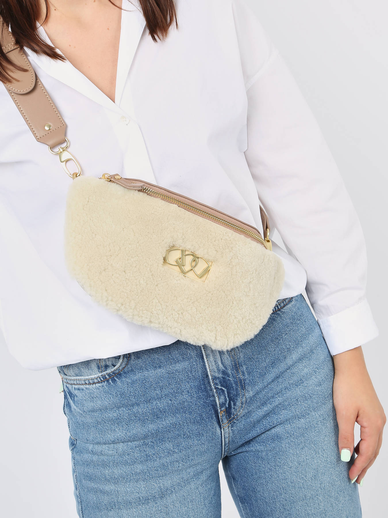 The sherpa version of our banana bag, which has become a key product of the house. With its supple and resistant smooth beige leather, its sherpa material mixes audacity and originality. Stamped with the triple Etrier logo, it is a model that will offer you a nice capacity. Inside you will find a leather key ring and a zippered pocket, as well as a small leather-lined pocket.