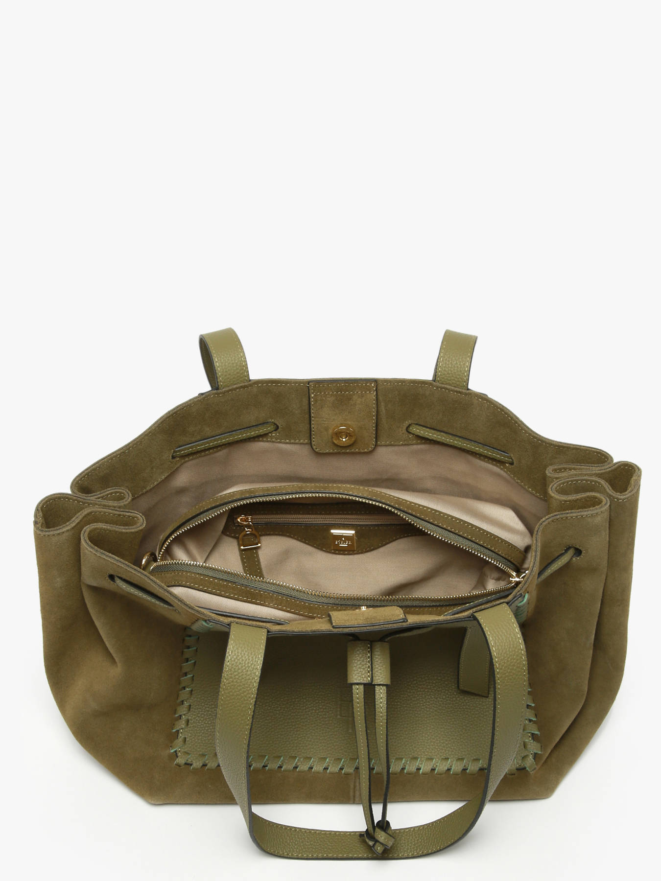 Le sac porté épaule de la ligne BRUMBY par ETRIER est un cabas en bi-matière cuir lisse et velours, rehaussé d’un élégant tressage inspiré du style iconique de la maison. Ce modèle généreux au format A4 vous permet d’y glisser sans effort un ordinateur 13 pouces tout en conservant une allure raffinée. Un grand pochon en coton amovible, fermé par un zip, assure la protection de vos objets et un rangement efficace grâce à sa poche simple et sa poche zippée. Le sac se porte à l’épaule avec aisance, combinant robustesse et finesse dans ses détails tressés.