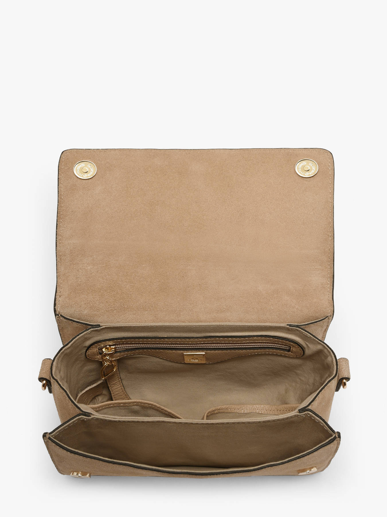 De ETRIER cross body tas uit de ALTESSE SUEDE-lijn is verkrijgbaar in het grootste formaat. Deze nieuwe winterversie van onze iconische collectie is gemaakt van zacht en warm suède leer, dat tijdloze elegantie combineert met een « Highlander Cowboy » spirit. Hij heeft een achterzak, een magnetische flap met een gouden Etrier-sieraad, een klein handvat voor een verfijnde handtas en een verstelbare en afneembare schouderriem voor een veelzijdige look.