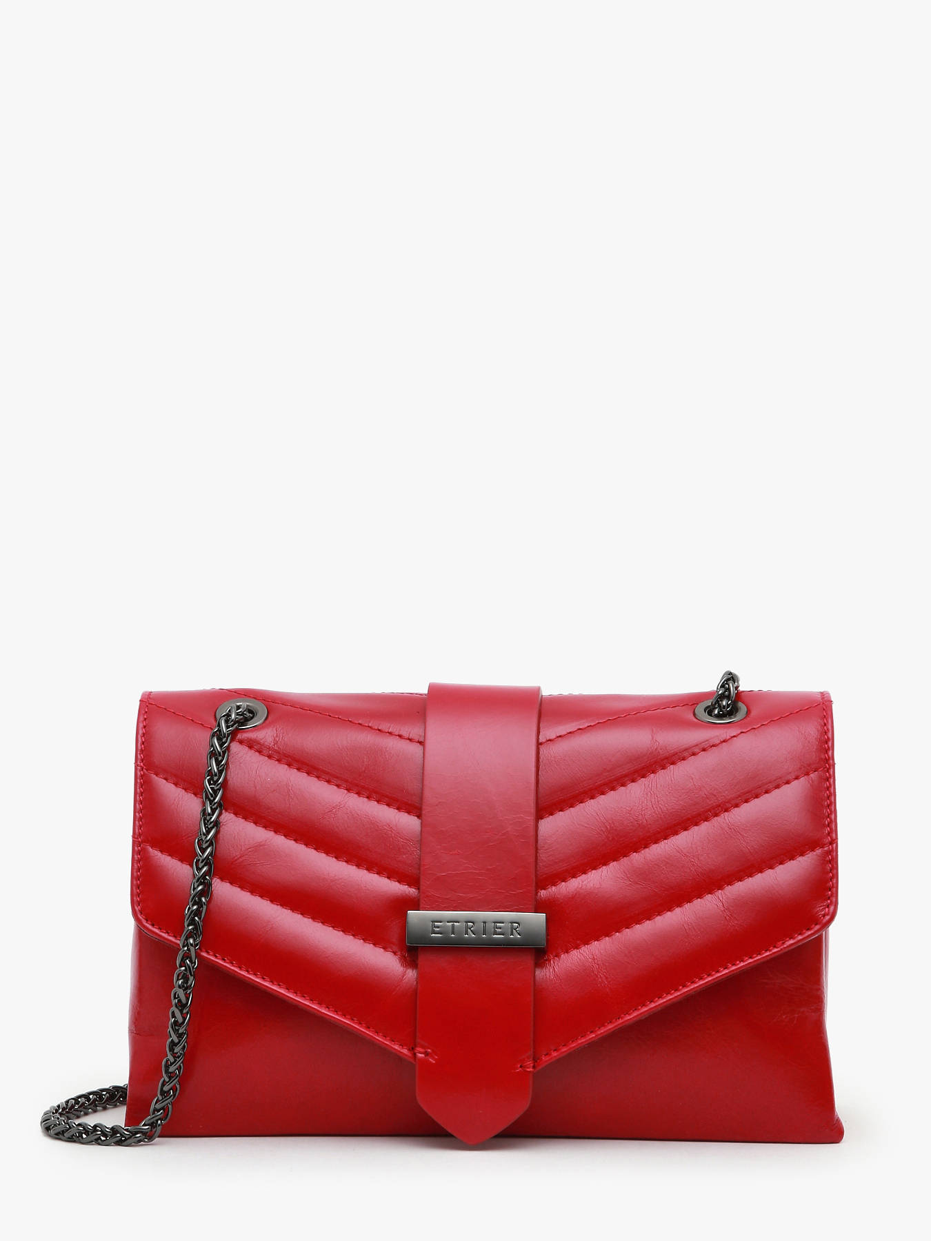 The ETRIER JANA AMOUR crossbody bag is offered in its larger size. Its slightly shiny leather with a crackled effect gives it a distinctive elegance. Crafted from cowhide leather, it features a back pocket. The closure is secured by a flap with a magnetic snap. With a chain and leather shoulder strap, it can be worn crossbody or over the shoulder. Inside, two compartments contain two slip pockets and a zip pocket, all lined with cotton.