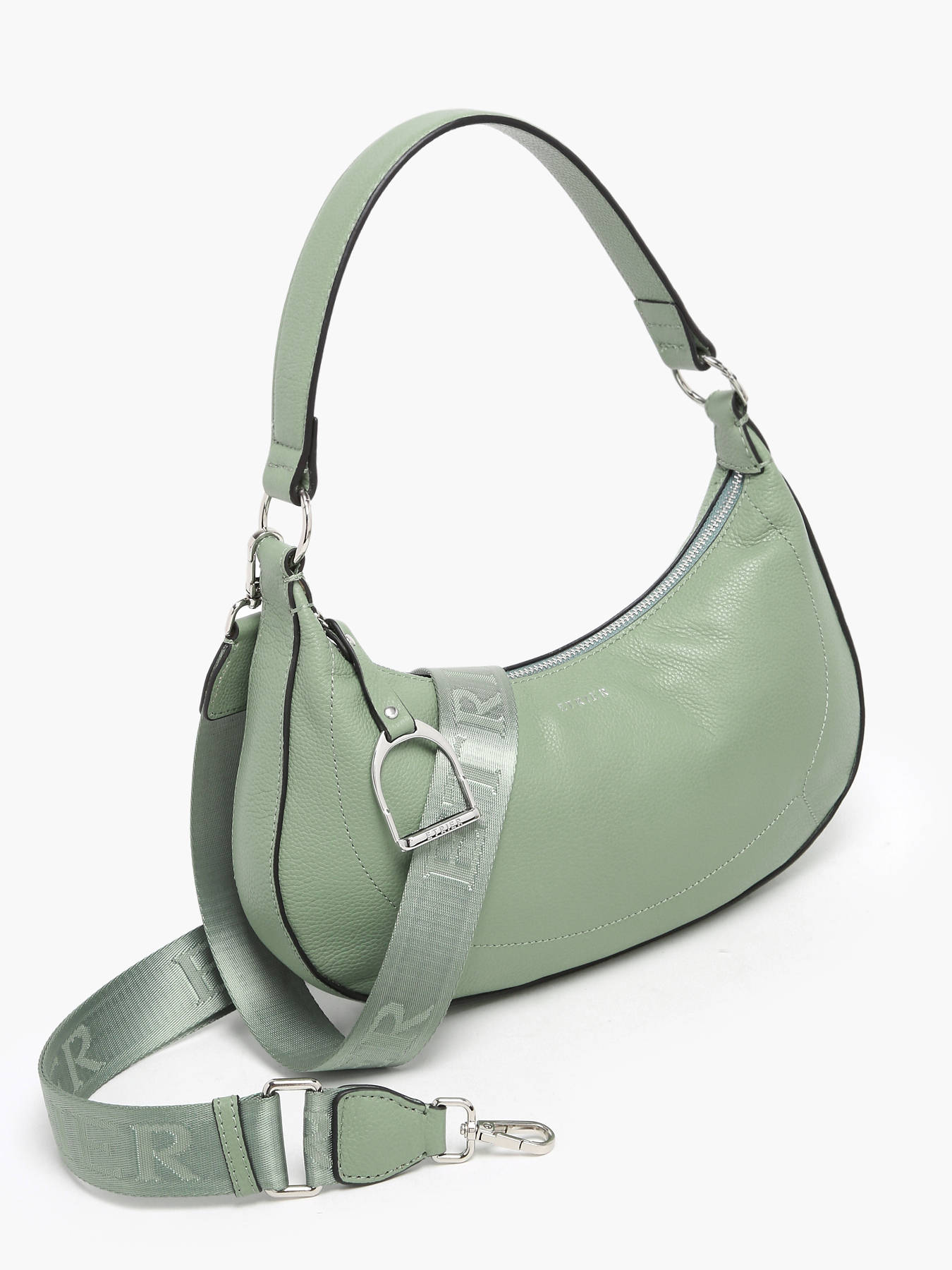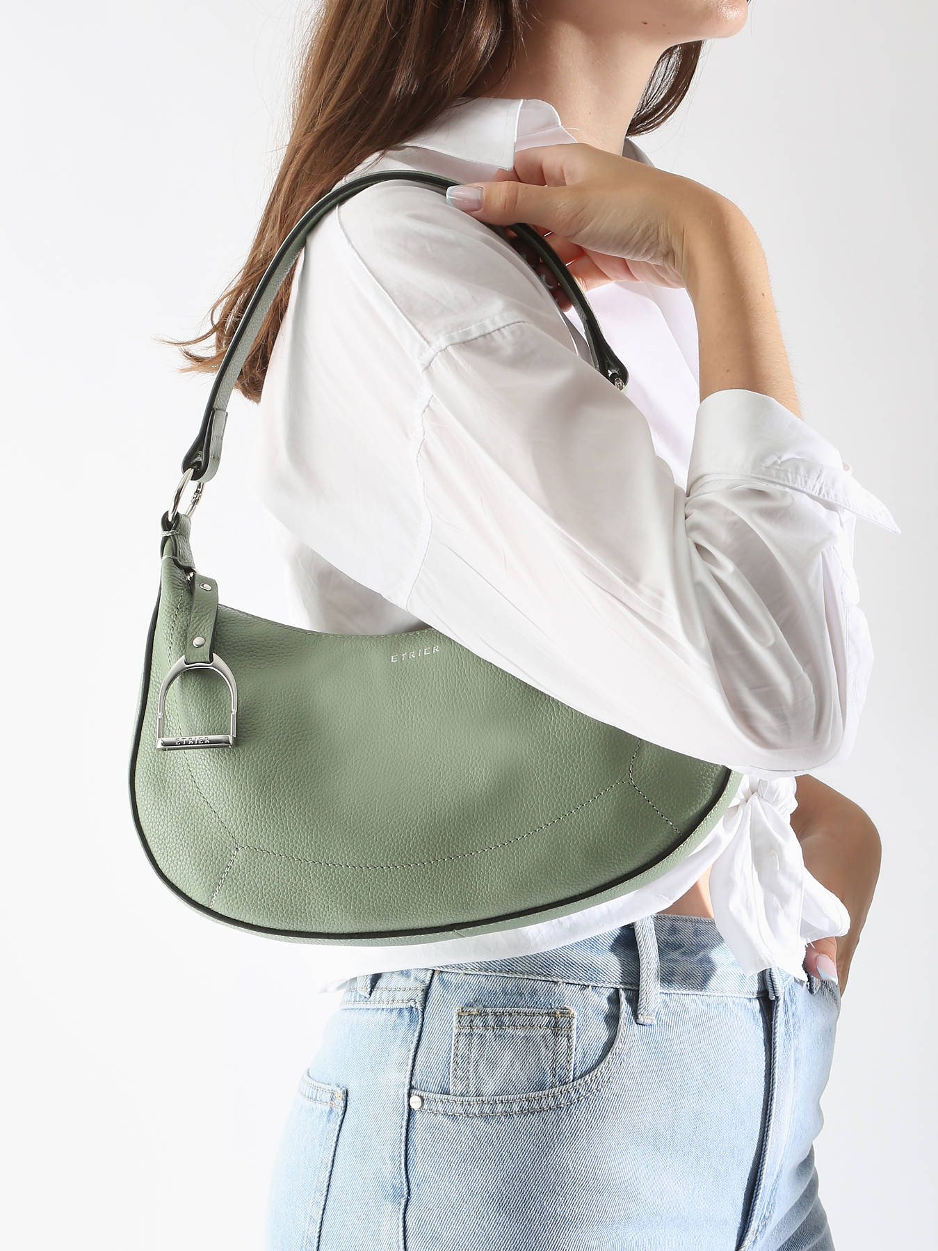 The ETRIER shoulder bag from the ALTESSE line features a half-moon silhouette, soft and modern. Crafted from high-quality grained cow leather, it closes easily with a zip closure. Equipped with a leather handle and an adjustable and removable woven shoulder strap, it offers versatility for shoulder or crossbody wear. Tone-on-tone stitching adds a touch of elegance. Inside, it has two simple pockets, a zip pocket, and a compartment for optimal organization of your belongings.