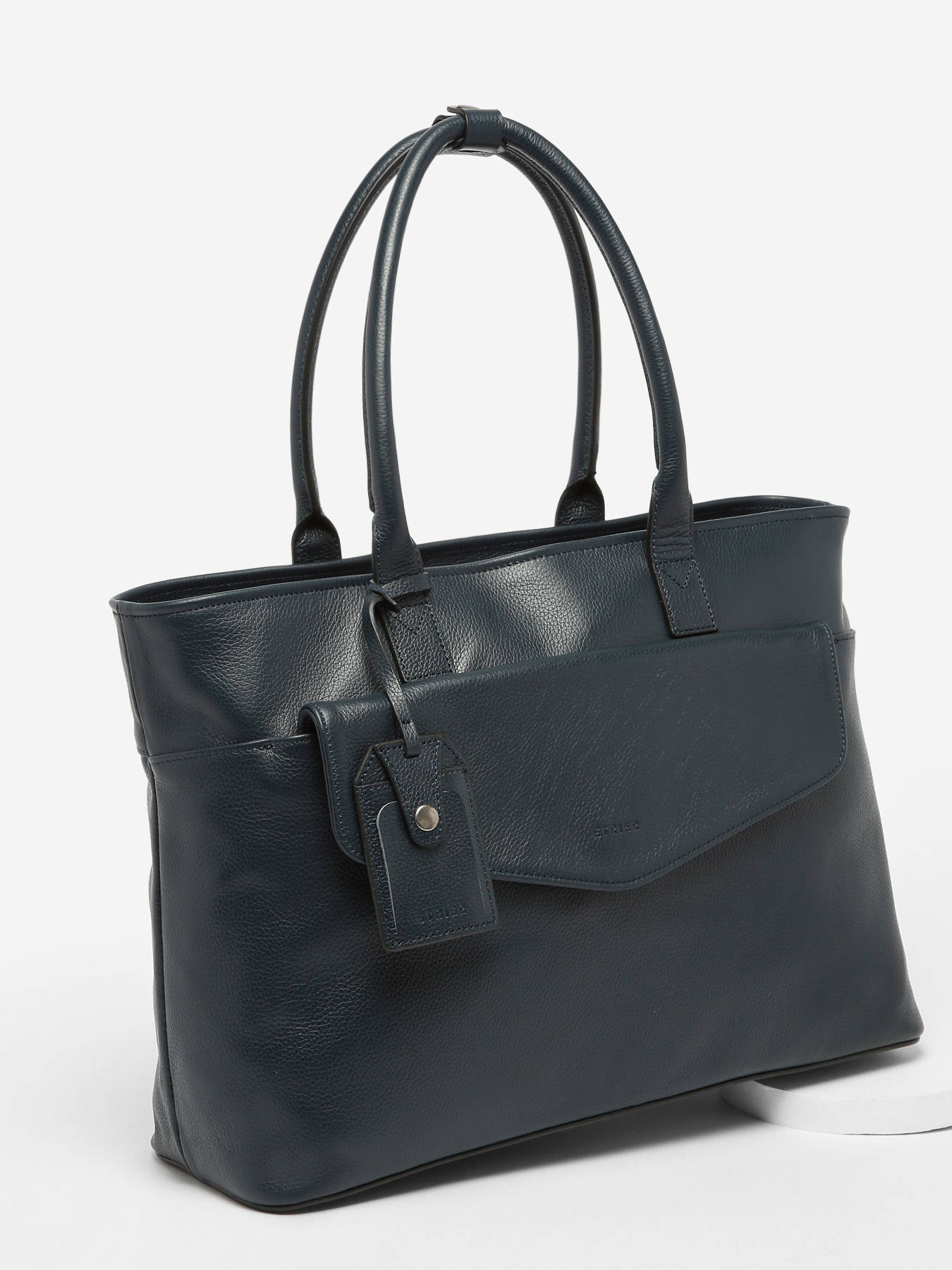 Ce porte document intemporel et élégant est le modèle dont vous ne vous lasserez pas. Embossé du logo Etrier, c'est un modèle discret, phare de notre collection Business. Il pourra accueilir tous vos documents ainsi qu'un PC 15"". Porté main, ses hanses s'attachent à l'aide d'une pression en cuir.