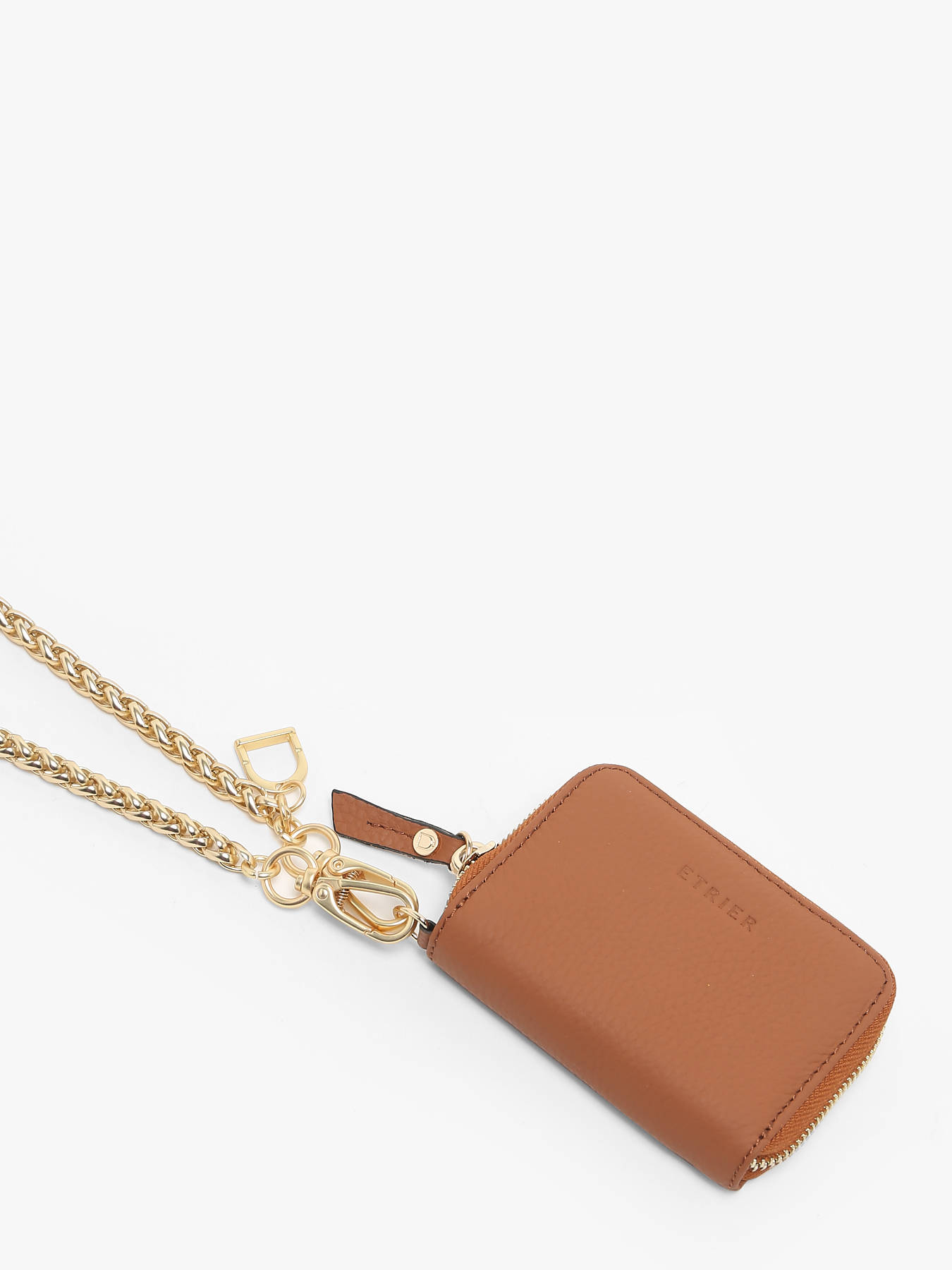 De portemonnee uit de EQUESTRE-lijn van ETRIER is gemaakt van volnerf rundleer, wat zorgt voor een uitstekende kwaliteit en een verzorgde afwerking. Praktisch en compact, hij biedt twee vakken voor bankkaarten, een ritsvak voor muntgeld, en twee insteekvakken voor je biljetten of bonnetjes. Een ring is ook voorzien om een ketting toe te voegen (niet inbegrepen), zodat je hem over de schouder kunt dragen voor meer veelzijdigheid. Een praktisch en elegant accessoire, ideaal om je dagelijks te vergezellen.