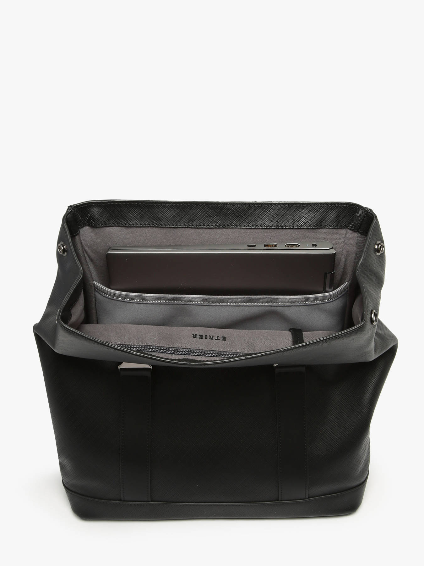 Ce sac à dos business de la ligne Flèche, en cuir texturé, allie élégance et praticité. Il présente un logo gravé sur les fermoirs et dispose d’un passant de poignée télescopique pour plus de confort. Avec sa poche au dos, son compartiment renforcé pour un ordinateur 15"" et ses bretelles réglables, il est conçu pour les professionnels. L'intérieur comprend deux poches simples ainsi qu'une poche éclair pour un rangement optimal.