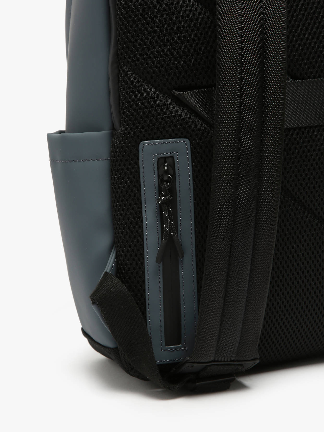 Ce sac à dos business de la ligne Impulsion, en polyuréthane imperméable, combine élégance et praticité. Il arbore un logo en relief ton sur ton et dispose d’un passant de poignée télescopique. Il comprend deux poches avant, une poche arrière, et à l’intérieur, il est divisé en deux compartiments avec trois poches simples, une poche éclair et une poche renforcée pour un ordinateur 15"".