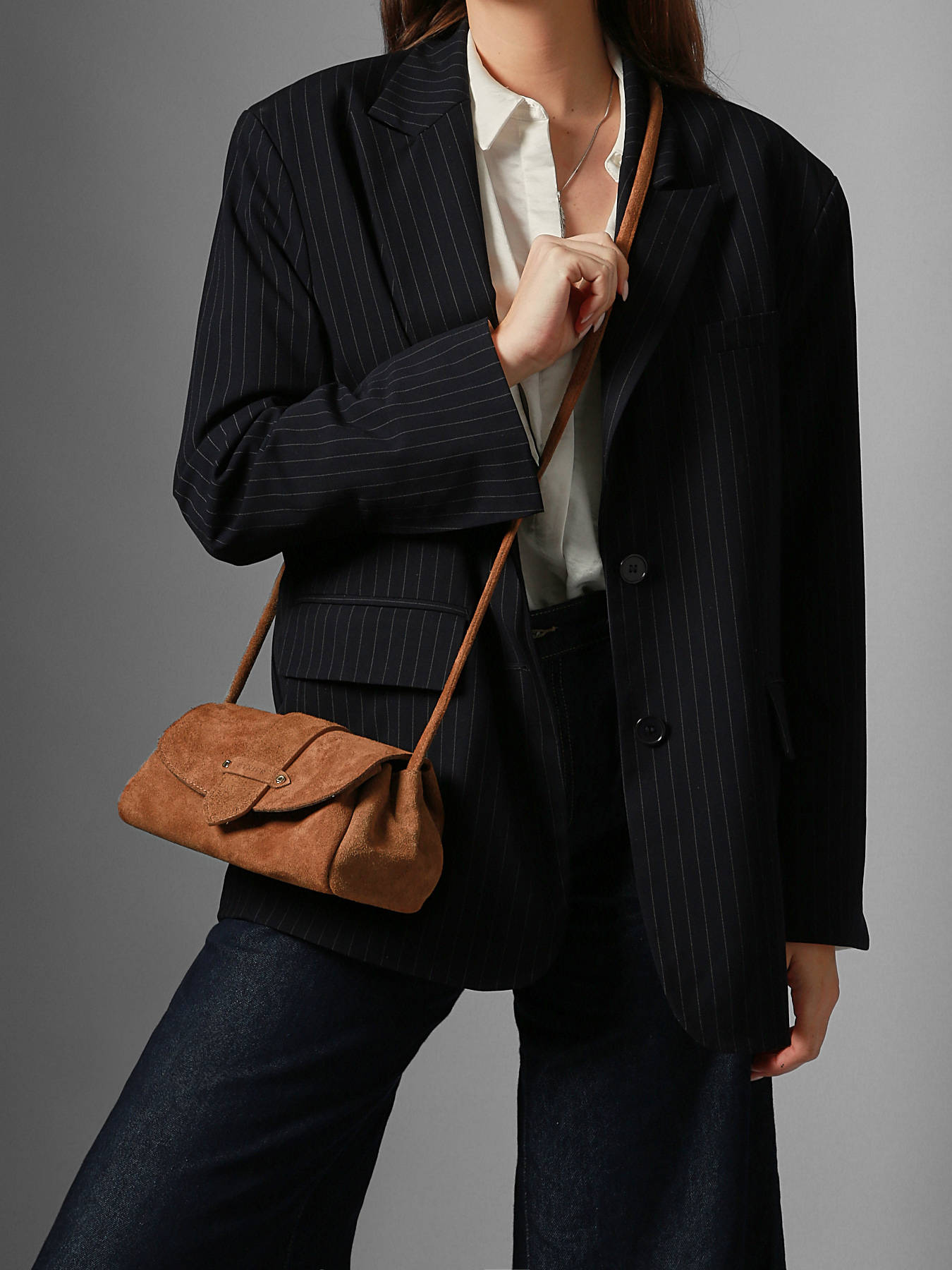 Le sac porté bandoulière AGNES signé ETRIER est conçu en France dans un cuir velours italien, offrant une texture douce et raffinée. Ce modèle est présenté ici en taille S et se ferme par un rabat doté d'un bouton-pression aimanté. Il existe également en taille M pour celles et ceux qui souhaitent une contenance plus généreuse. Le sac est agrémenté d'une languette réversible, composée d'une face dorée et d'une face en cuir assortie au reste du sac. Elle se fixe aisément grâce à deux boutons de col et se glisse dans une poche arrière prévue à cet effet.