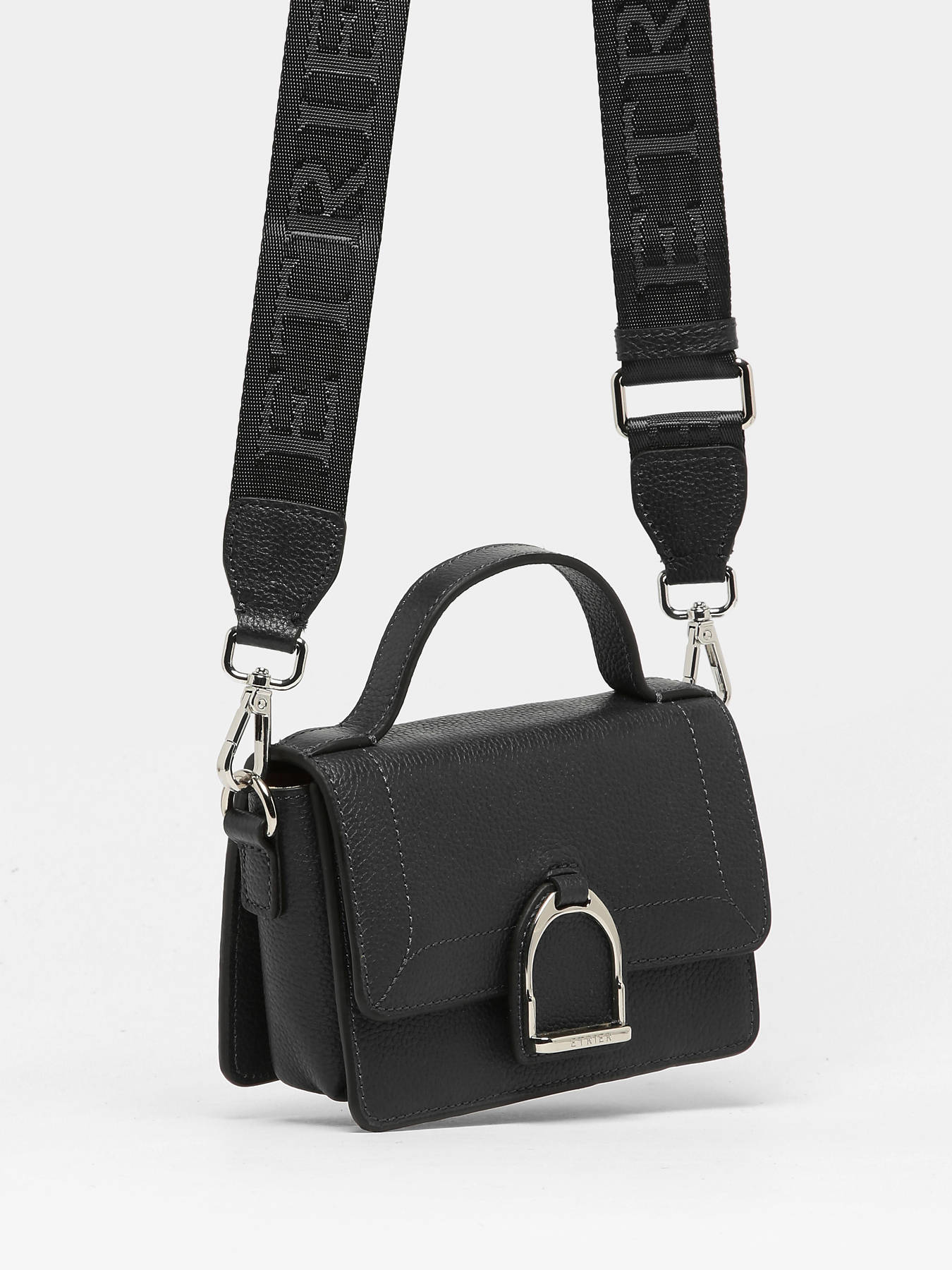 Le sac bandoulière ETRIER de la ligne ALTESSE se décline dans un mini format. Fabriqué en cuir de vachette pleine fleur, il offre une poche à l'arrière et une large bandoulière amovible en toile brodée du logo ETRIER ton sur ton, ainsi qu'une anse en cuir. Sa fermeture à rabat, ornée de l'étrier en métal emblématique de la maison, se sécurise par pression aimantée. Polyvalent, il peut être porté en bandoulière ou à la main. À l'intérieur, un porte-clé en cuir accompagne un compartiment comportant une poche plate et une poche éclair pour une organisation optimale. Il est décliné dans plusieurs coloris saisonniers, ainsi que dans deux tailles supérieures.