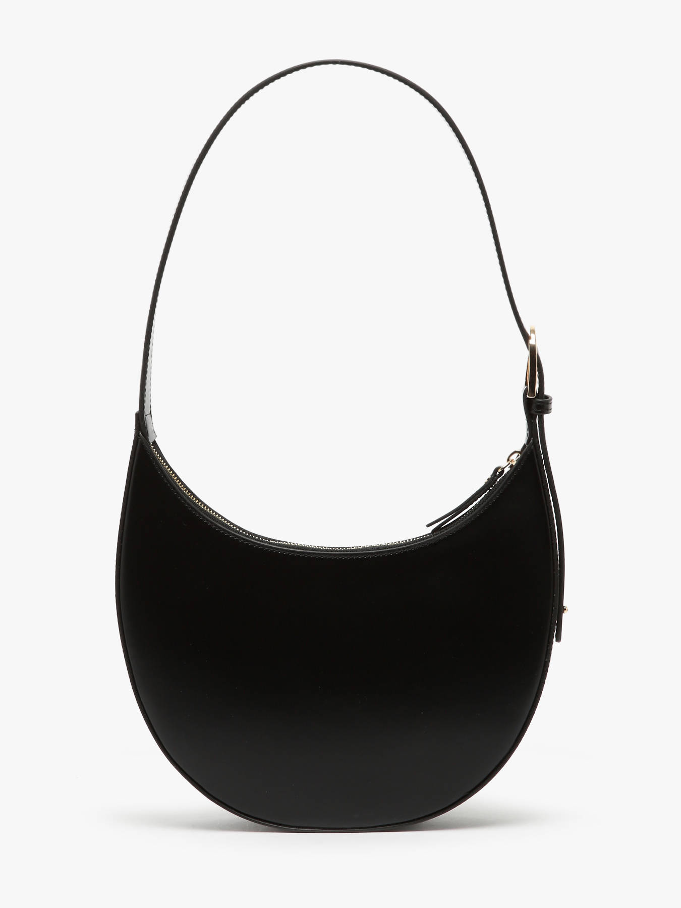 Ce sac demi-lune ETRIER de la ligne ALTAIR en cuir de vachette allie élégance et praticité. Son porté épaule est sublimé par une boucle raffinée et un petit clou signature en forme de goutte. Fonctionnel, il dispose d’un compartiment spacieux, d’une poche simple et d’une poche zippée. Fermeture zippée. Hauteur de anse : 26 cm.