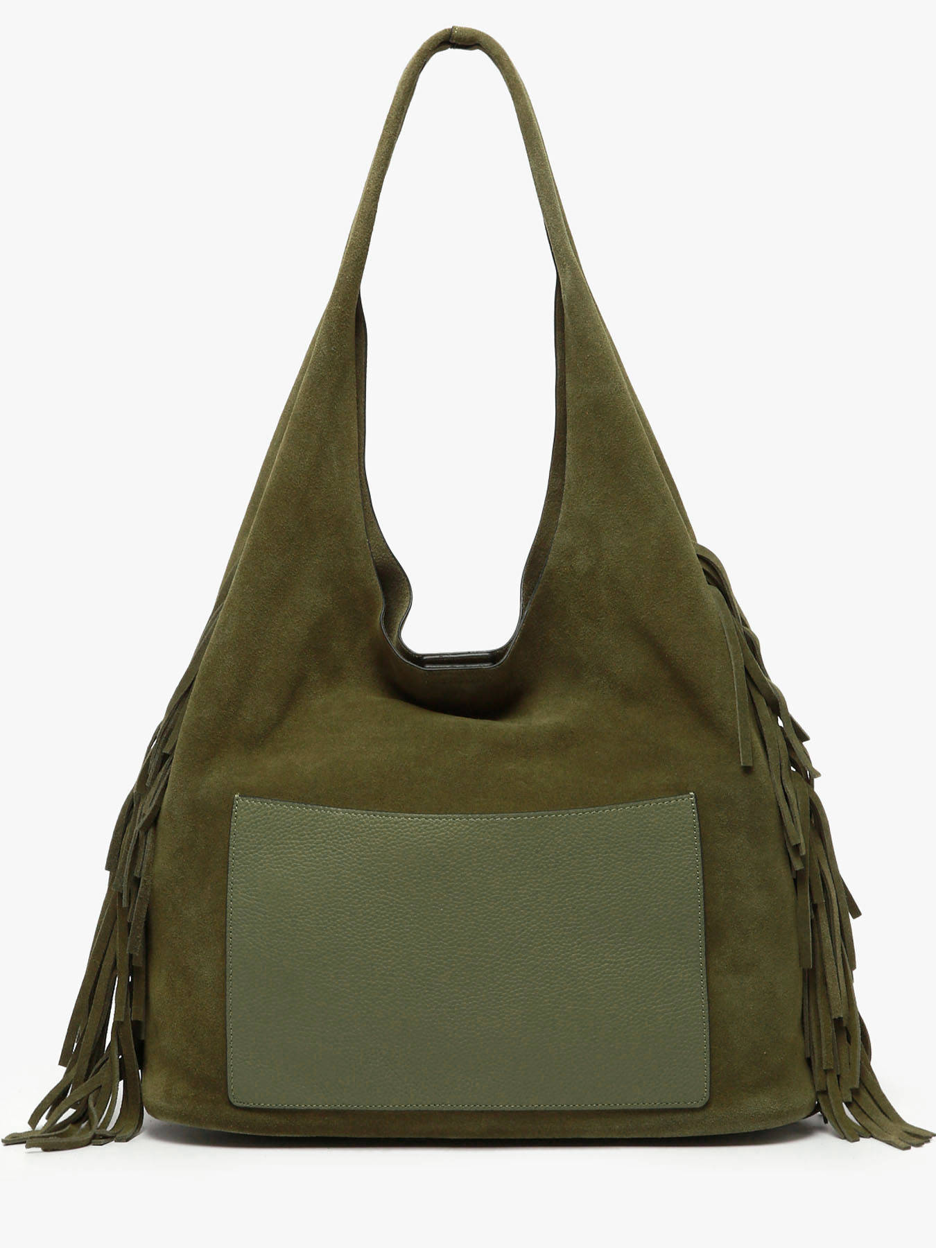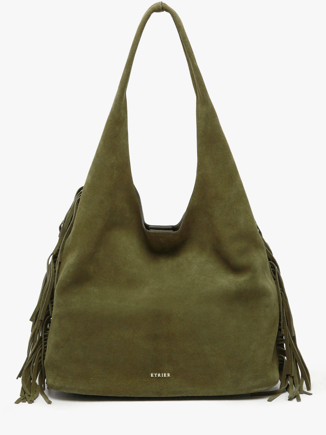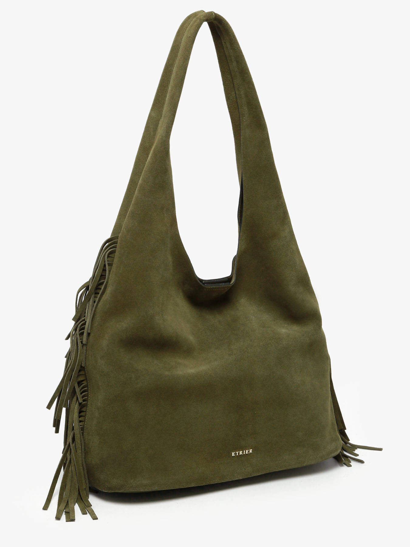 De ETRIER schoudertas uit de COUNTRY-lijn is gemaakt van suède leer. Dit hobo-model valt op door zijn zijwaartse franjes en chique bohemien stijl. Hij heeft een steekzak aan de achterkant en sluit met een magneetsluiting. Binnenin zorgt een afneembare pouch voor de veiligheid van je persoonlijke spullen. In zijn grote formaat straalt deze tas een vrije en elegante stijl uit, perfect voor de winter, met authentieke texturen en een natuurlijke beweging.