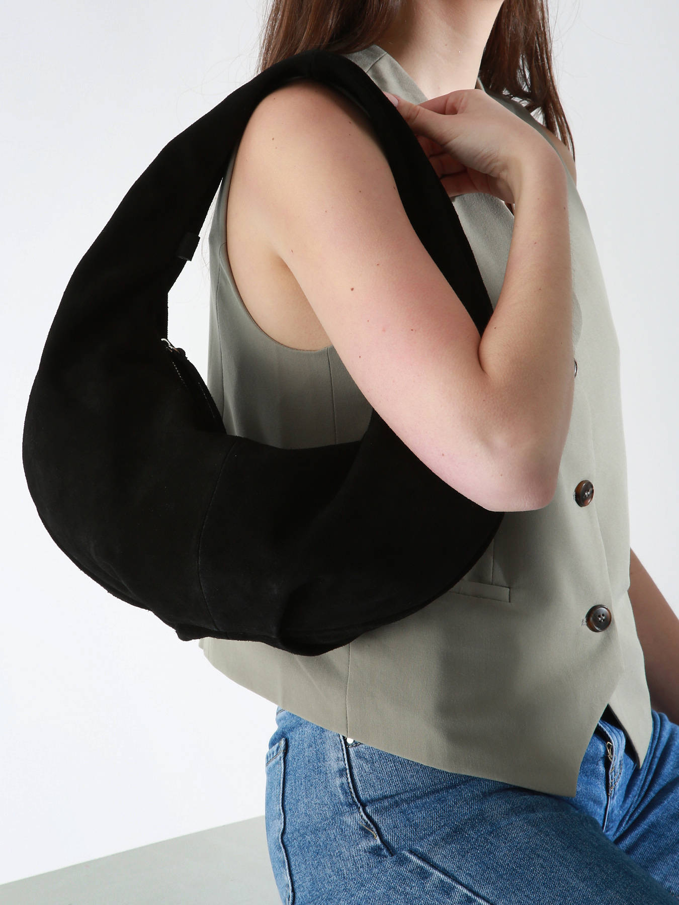 De REBOND schoudertas van ETRIER, een waar handtekeningstuk, is een must-have van het seizoen. Met zijn elegante hobo-silhouet en soepel nubuck leer, belichaamt hij perfect de moeiteloze chic. Licht en praktisch, biedt hij voldoende ruimte voor je essentiële spullen en biedt een aanpasbare draagmogelijkheid: op de schouder voor een casual look of aan de hand voor een meer verfijnde uitstraling. Het tijdloze ontwerp wordt versterkt door een uitzonderlijke Italiaanse vervaardiging. Bedacht om zich aan te passen aan jouw stijl, is hij uitgerust met binnenbevestigingen waarmee je een schouderriem naar keuze kunt toevoegen voor een nog persoonlijker draagcomfort (schouderriem niet meegeleverd). Combineer hem met onze ketting (referentie: 709-EACC070L) voor een trendy en verfijnde look. Qua functionaliteit beschikt hij over een binnenzak met ritssluiting om je benodigdheden veilig op te bergen en sluit hij met een rits voor maximaal gemak.