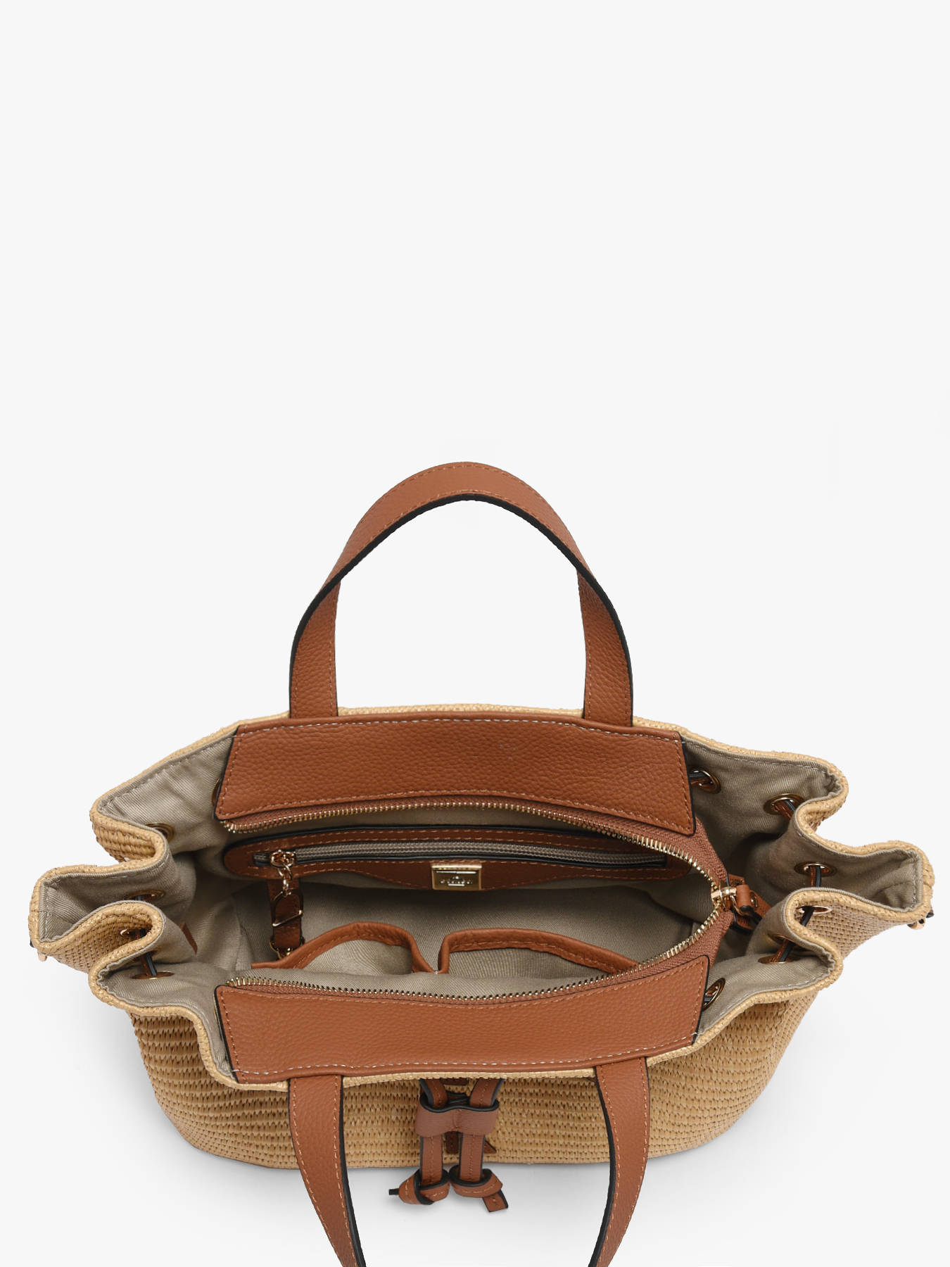 From the BRUMBY ESTIVAL line by ÉTRIER, this crossbody bag charms with its harmonious blend of grained leather and raffia, a signature of a style that is both contemporary and elegant. Its design is created to complement summer silhouettes with lightness and refinement. Crafted from cowhide leather, it is enhanced with polypropylene straw trim, giving it a natural feel while remaining decidedly chic. Its short 11 cm handle allows for a comfortable hand carry, while the adjustable and removable shoulder strap offers great versatility in wear, adapting to your mood and the occasion. The zippered closure keeps your belongings secure, while the drawstring lets you adjust the bag’s volume—worn loose for a relaxed look or tightened for a more structured style. Inside, the layout is designed for practical and organized use, featuring two slip pockets and one zip pocket, ideal for keeping your essentials within easy reach. Functional and stylish, the BRUMBY ESTIVAL crossbody bag is an everyday companion that combines character, flexibility, and natural elegance