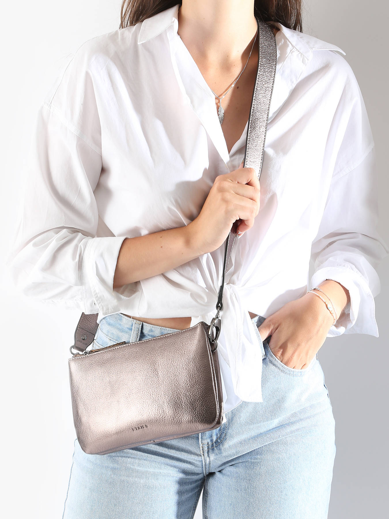 The ETRIER crossbody bag from the EMERAUDE line, crafted in supple, iridescent cowhide leather, adds a touch of shine to your everyday look. It features a zip closure and a wide, adjustable, and removable shoulder strap. Inside, the spacious compartment includes one zip pocket and one slip pocket for organizing your essentials.
