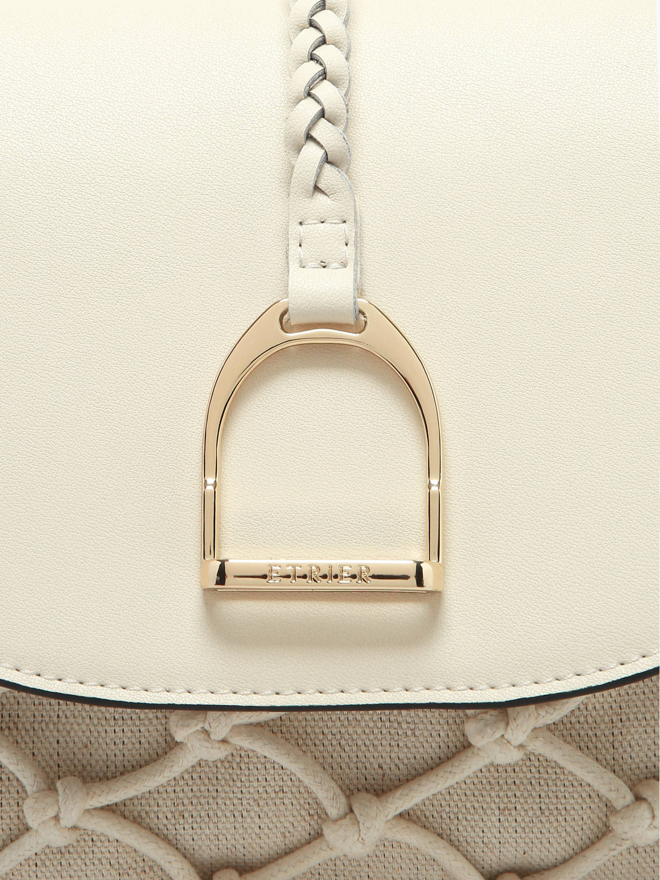 The SAHARA crossbody bag by ETRIER reinterprets the net bag in a chic and contemporary style. The combination of leather and cotton rope creates an elegant play of textures and transparency, evoking wide open spaces and a free-spirited feel. Designed with a lined net structure, it offers both lightness and everyday practicality. Its zip closure is complemented by a magnetic flap adorned with braided detailing and an ETRIER charm, adding a refined and distinctive touch. The adjustable and removable strap allows for comfortable, versatile wear. Inside, two slip pockets and a zippered pocket provide organized storage for your essentials, perfectly blending style and functionality.